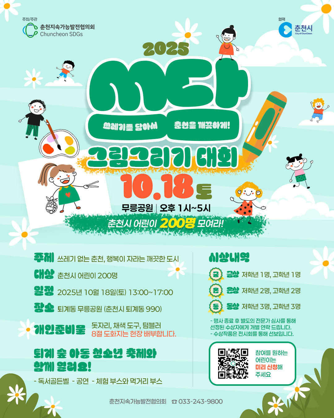 우리 손으로 그리는 쓰레기 없는 깨끗한 도시, 행복이 자라는 춘천을 꿈꿔요.